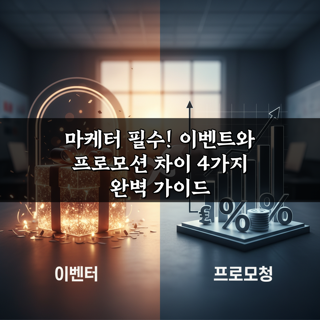 마케터 필수! 이벤트와 프로모션의 4가지 핵심 차이점을 완벽 분석합니다. 성공적인 마케팅 전략 수립을 위한 가이드를 지금 바로 확인하세요!